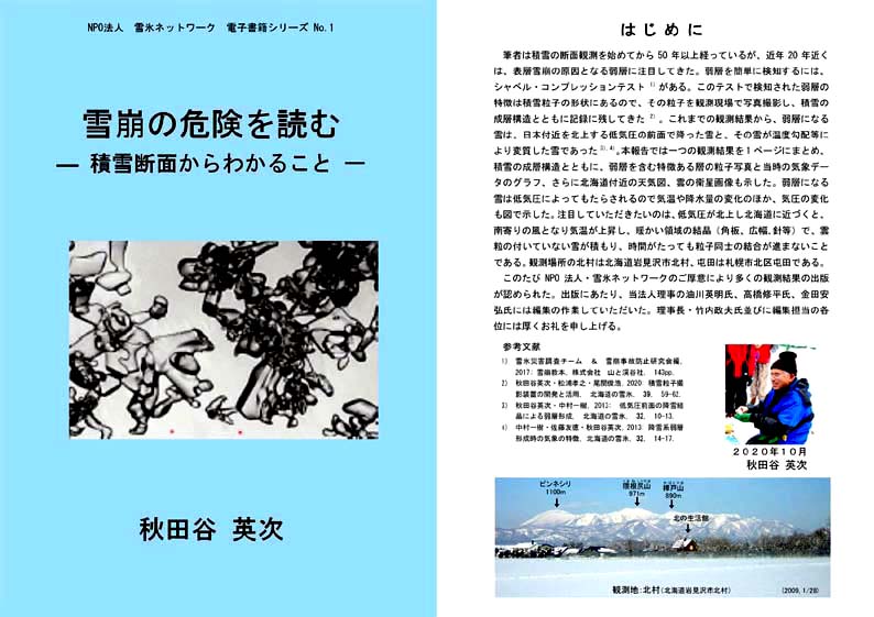 「雪崩の危険を読む」第2刷(2021年1月9日)の電子書籍です。内容は、初版第1刷(2020年11月1日)のものと同じものを掲載しています。この形式は、「bibi」ではなく、従来のHPソフトで作成しています。